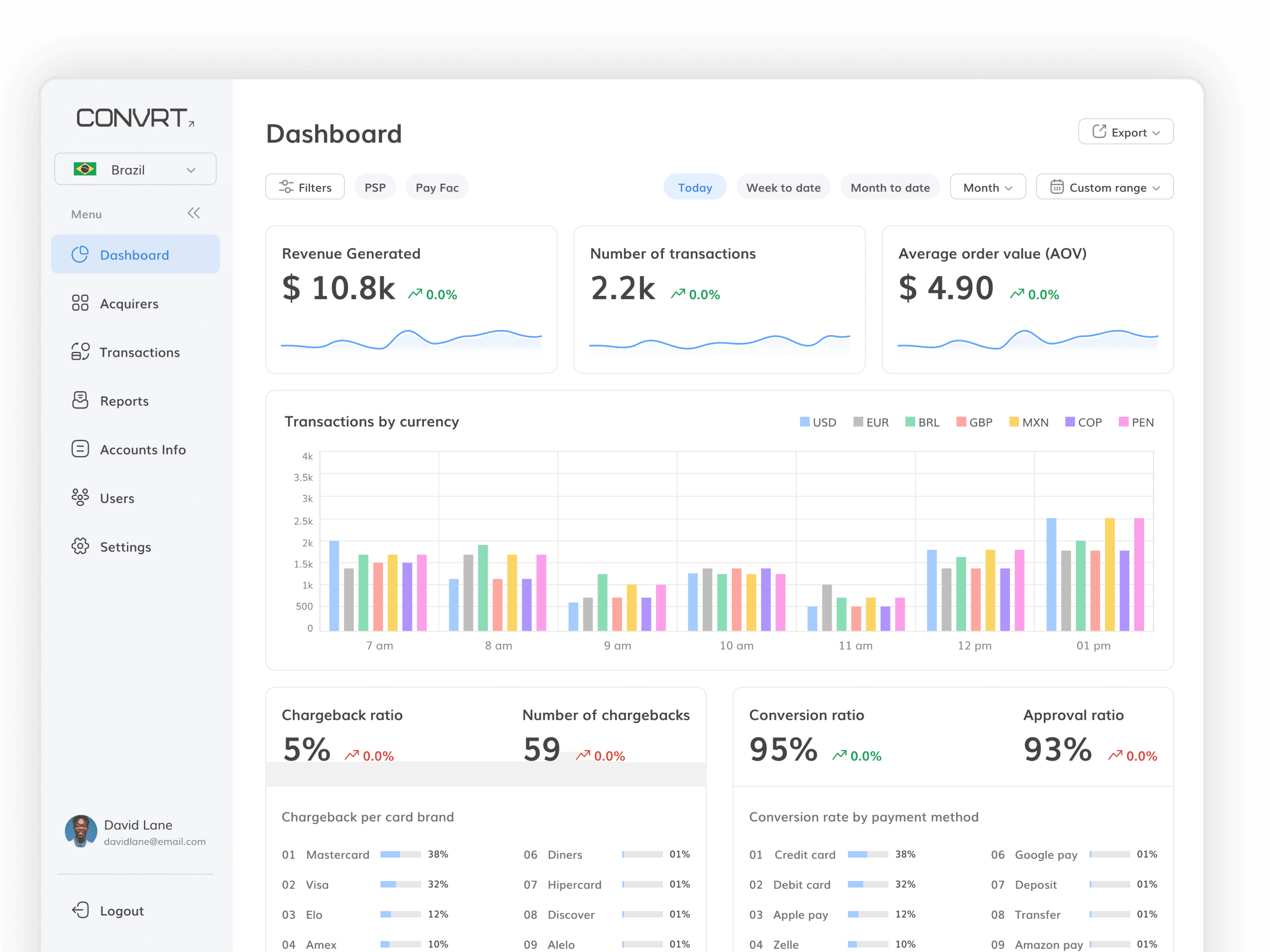 The redesign process of the payment gateway began with a deep dive into user feedback and industry standards. I conducted research to identify the most critical KPIs that would offer value to users, such as revenue trends, transaction volumes, and account balances. This research guided the design of the dashboard and additional features like reports and account management tools.